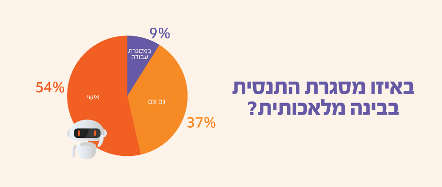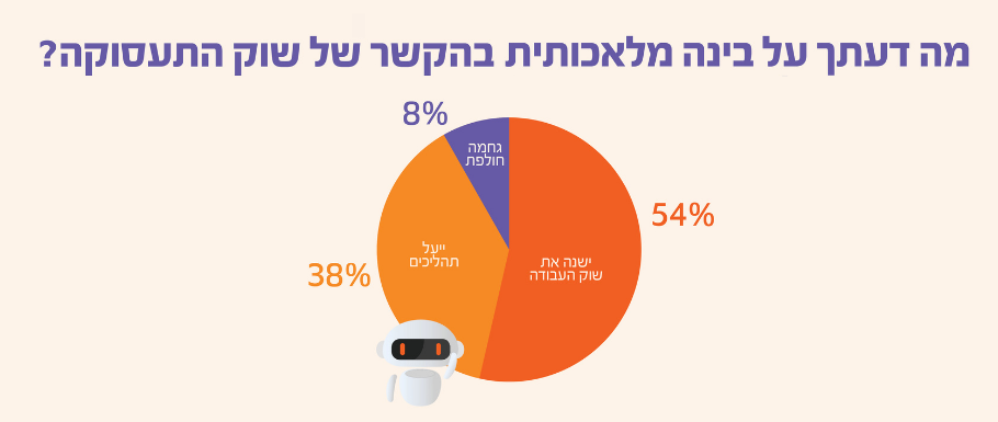 סקר חדש של AllJobsשנערך ביולי 2025, בו השתתפו כמעט 500 עובדים מכל הארץ, מצייר תמונה ברורה: הבינה המלאכותית כבר כאן והיא משולבת לא רק בחיים האישיים אלא גם במקומות העבודה. כשמשווים את התוצאות למחקרים בינלאומיים, רואים שאנחנו חלק ממגמה עולמית רחבה של שינוי שוק העבודה (The Future of Work).