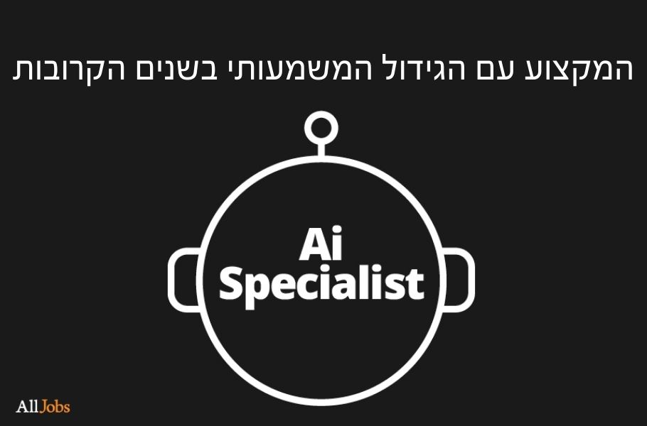 המקצוע עם הגידול המשמעותי ביותר במשרות בשנים הקרובות יהיה "מומחה בינה מלאכותית", מגמה שגם אנחנו ב-AllJobs מזהים.