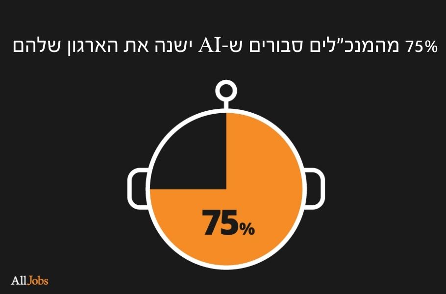 75% מהמנכ"לים סבורים ש- AI ישנה משמעותית את הארגון שלהם במהלך 3 השנים הקרובות.