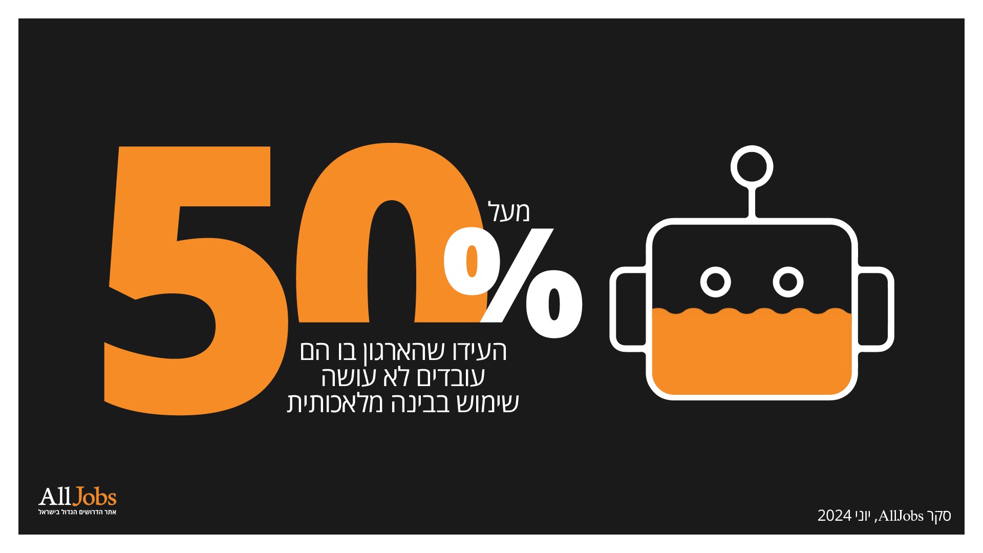 לשאלה 'האם הארגון שבו אתם עובדים עושה שימוש בבינה מלאכותית' - מעל 50% העידו שלא.